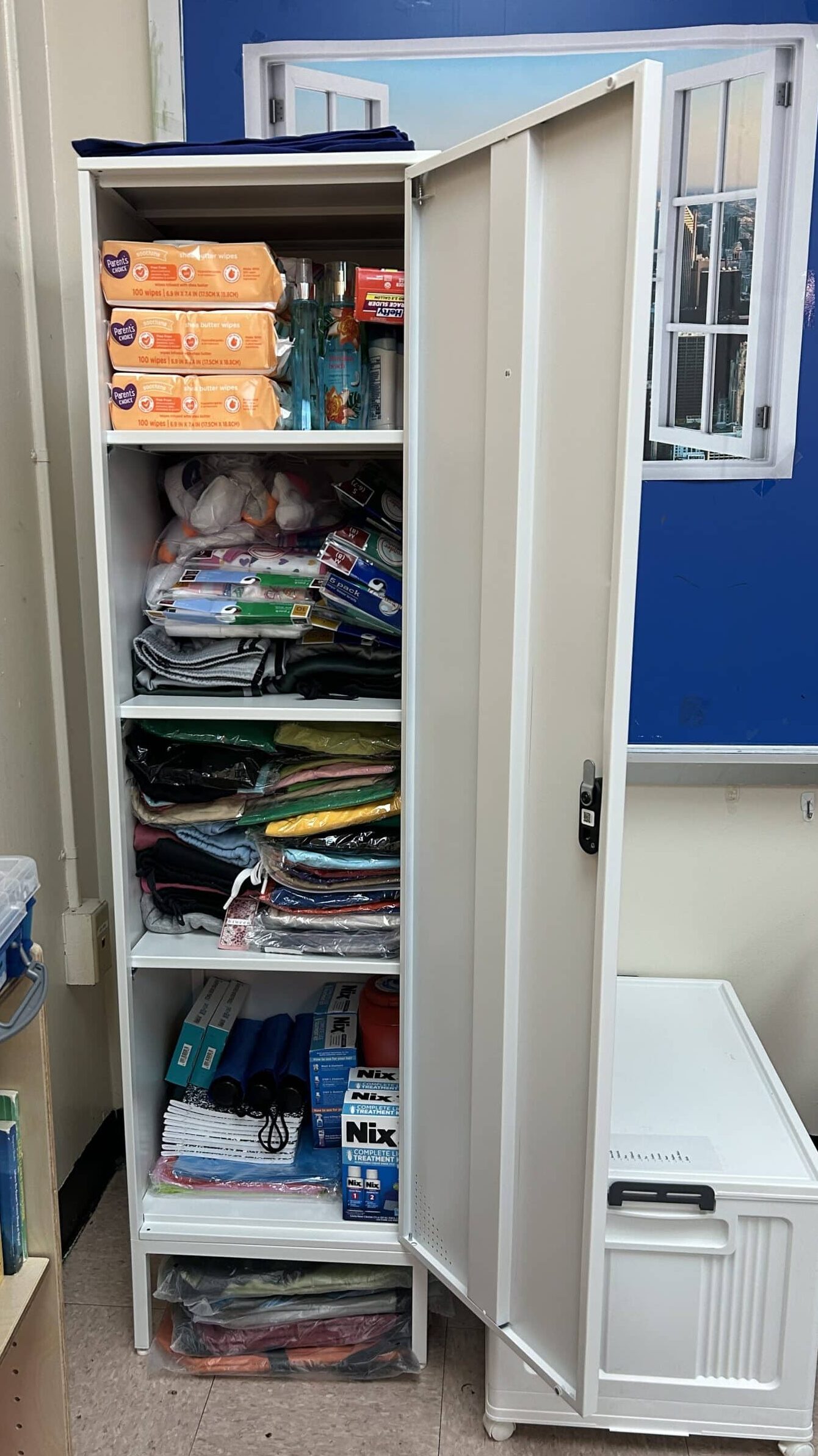 Each of our five schools in District 20 now has a fully stocked “care closet” with clothing, hygiene items, food, school supplies, laundry detergent, and laundromat cards — available discreetly for any student or family in need.